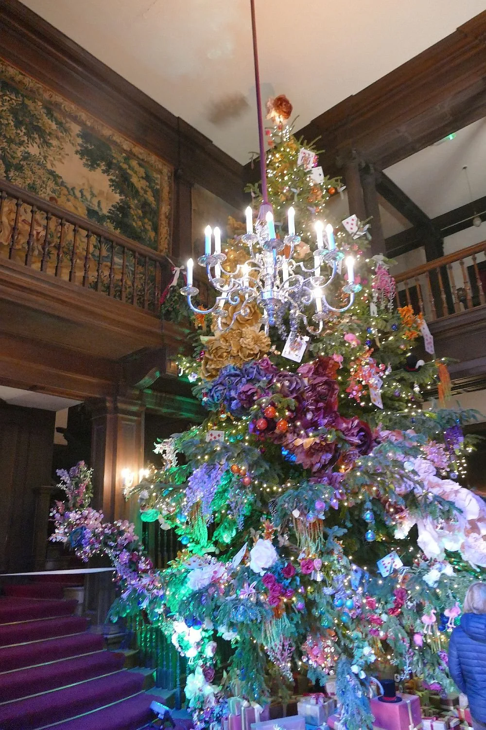 Our obsession with Alice’s visit to Wonderland-scape was actually sparked off by the National Trust. Our first introduction to visiting Trust properties at Christmas was PC (Pre Covid), when we enlivened a long drive with coffee, cake and Christmas at Greys Court (below) and, on the way back, at Prime Minister Disraeli’s home at Hughenden Manor. Both houses were pretty much decorated for a Christmas season appropriate to their history and inhabitants, and Hughenden had an excellent display of good old fashioned paper chains.
