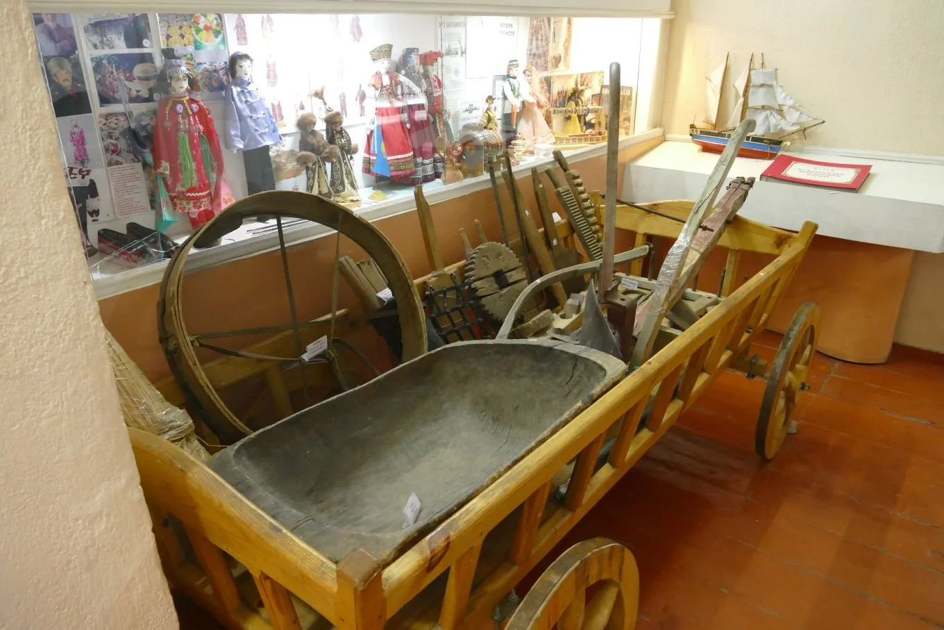 Below left: Museum of Local History and, right: agricultural machinery and dolls dressed in the costumes of the immigrants who came to farm here