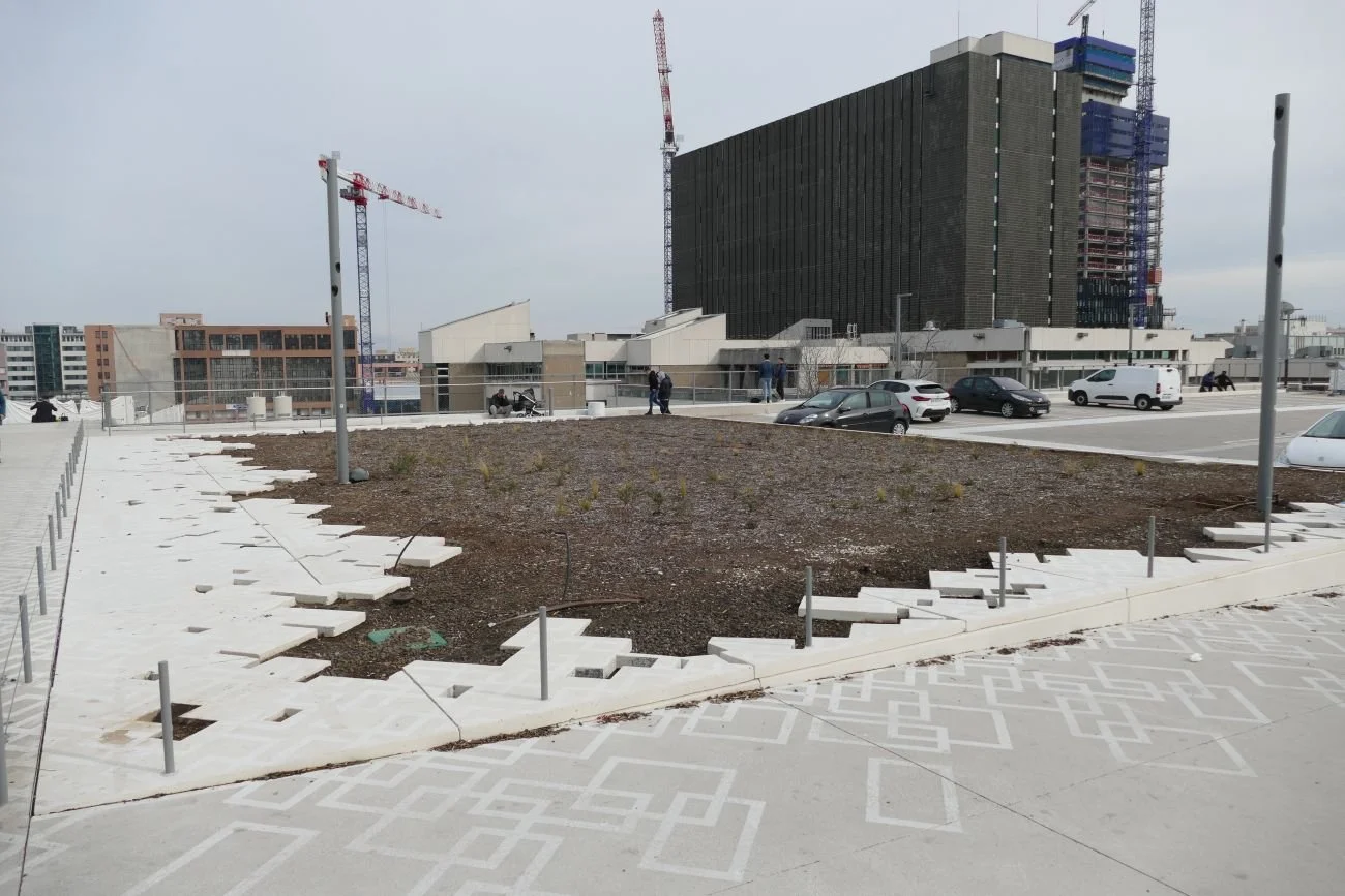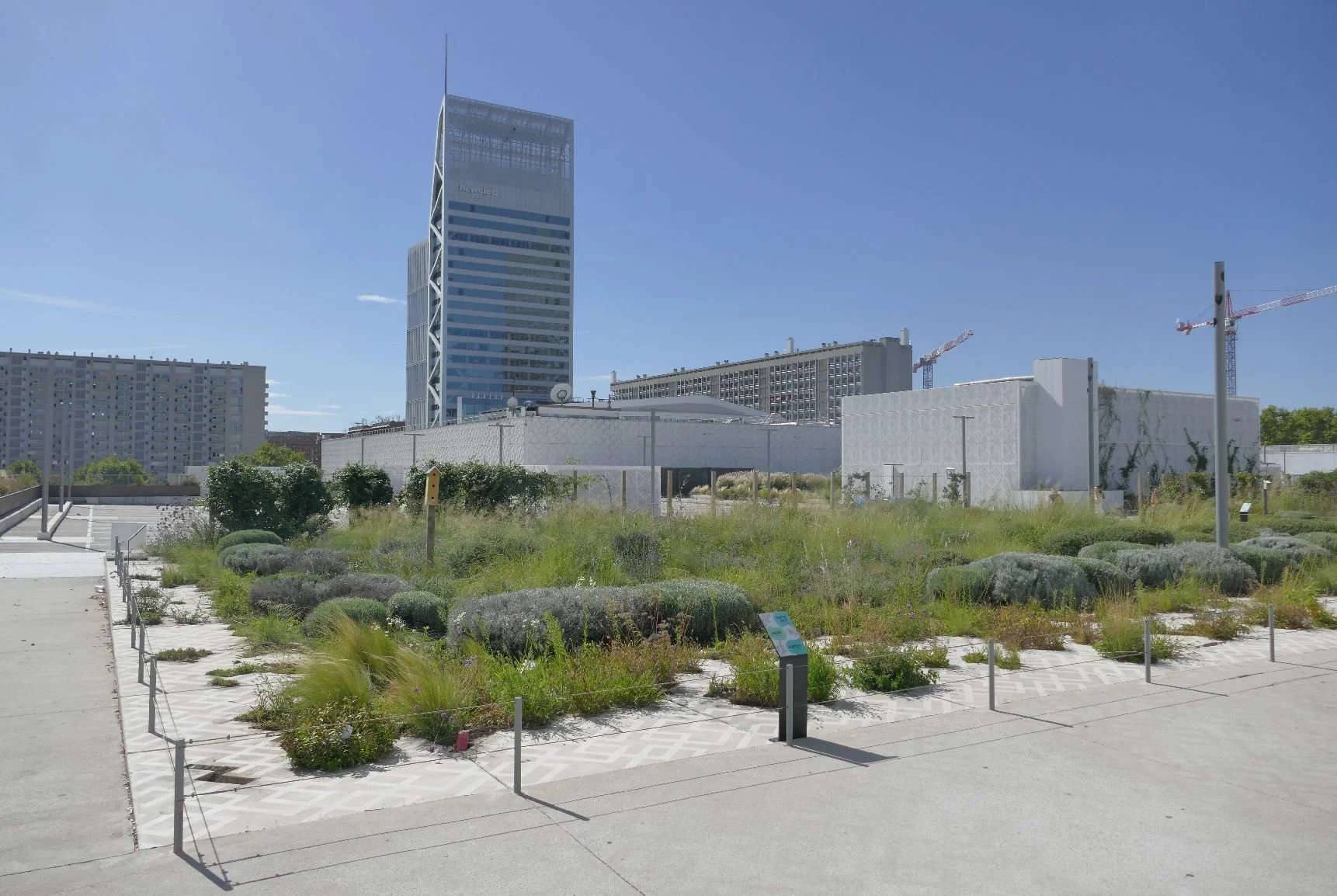 The large chalky white cliff to our left in the above 2025 image is the in-your-face wall of the Lyon Westfield (makes East London’s Stratford version look positively inviting). When we climbed those steps in the spring of 2022 we discovered that the shopping centre had opened, and attempts were being made to create some sort of sitting out area. To be honest, and despite the columnar tower block, it reminded us of a café in a chilly and deserted mountain top ski resort.
