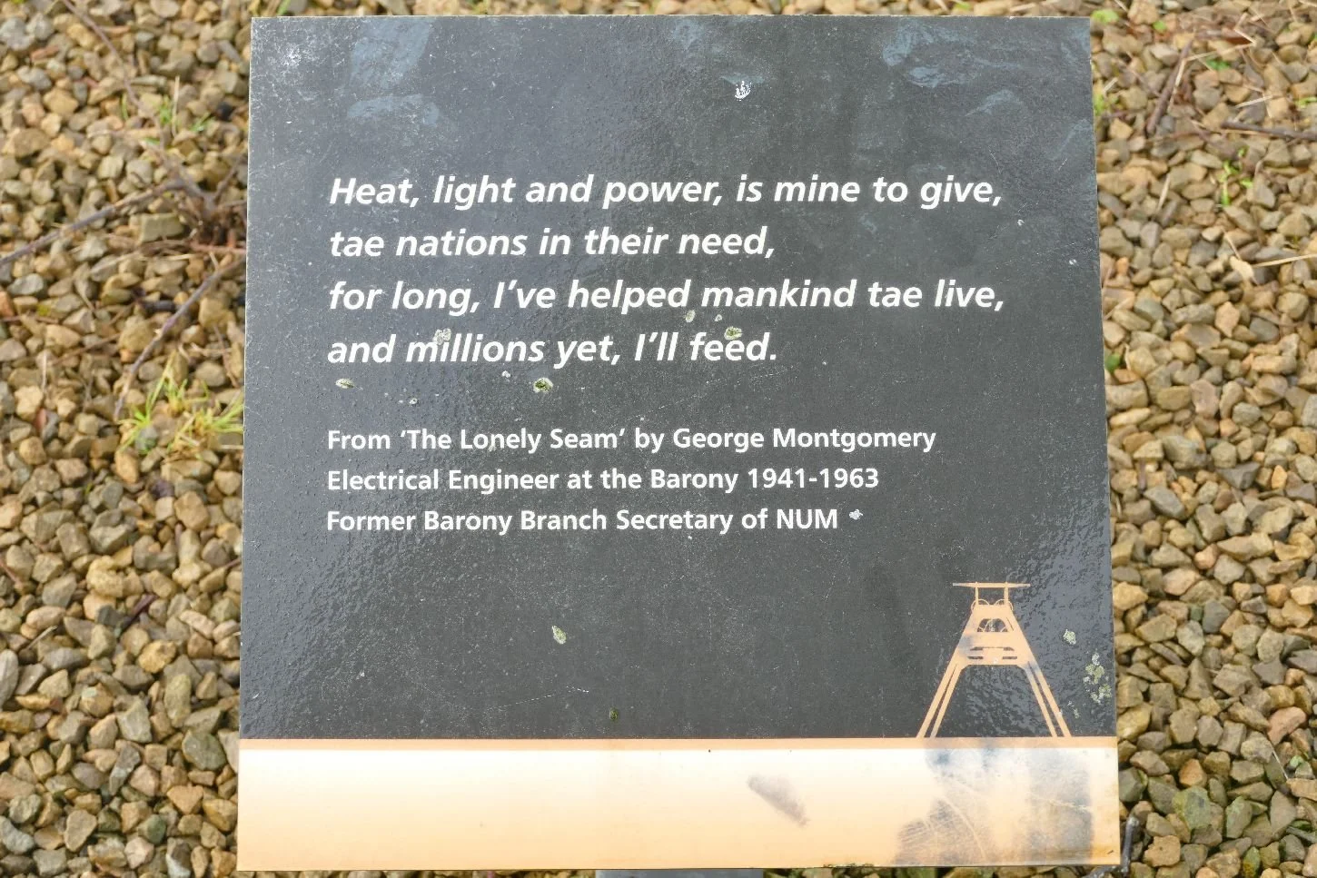 The 1960’s saw life at Barony begin to change. In 1962, the No 2 shaft collapsed, four miners were killed and the decision was taken to fill in both 1 and 2 shafts. No 3 shaft could not operate without an additional escape shaft and so the pit was shut with 1,100 men laid off. Salvation came in the form of a new coal fired power station within the region and a No 4 shaft was sunk, enabling the colliery to re-open in 1966. But the writing was creeping along the wall and technology and political attitudes were changing. The adjacent power station closed in 1983, to be quickly followed by the Miners’ strike and, for Barony, geological difficulties in the form of a fault in the coal seam. The pit was declared no longer viable and was closed in 1989.